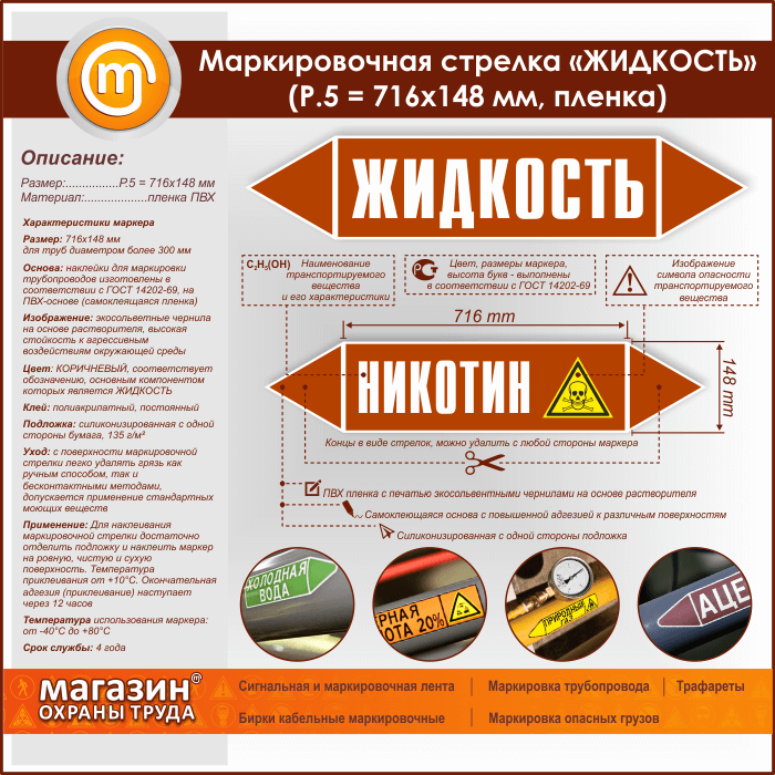 Маркировочная стрелка «ЖИДКОСТЬ» (P.5 = 716х148 мм, самоклеящаяся плёнка) в Твери купить