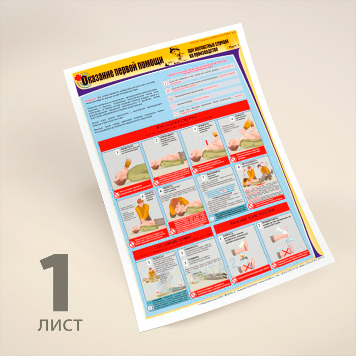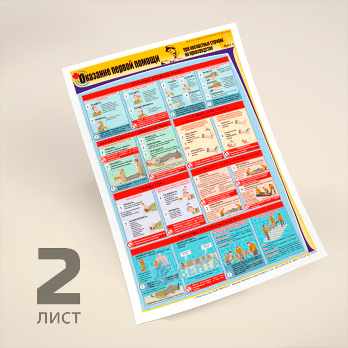 Плакаты «Оказание первой помощи при несчастных случаях на производстве» (В-03, ламинированная бумага, А2, 3 листа) в Твери купить