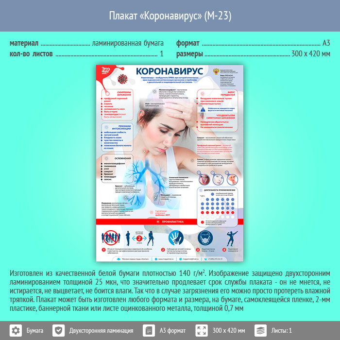 Плакат «Коронавирус» (М-23, ламинированная бумага, А3, 1 лист) в Твери купить