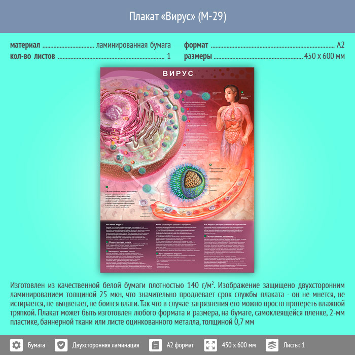 Плакат «Вирус» (М-29, ламинированная бумага, А2, 1 лист) в Твери купить