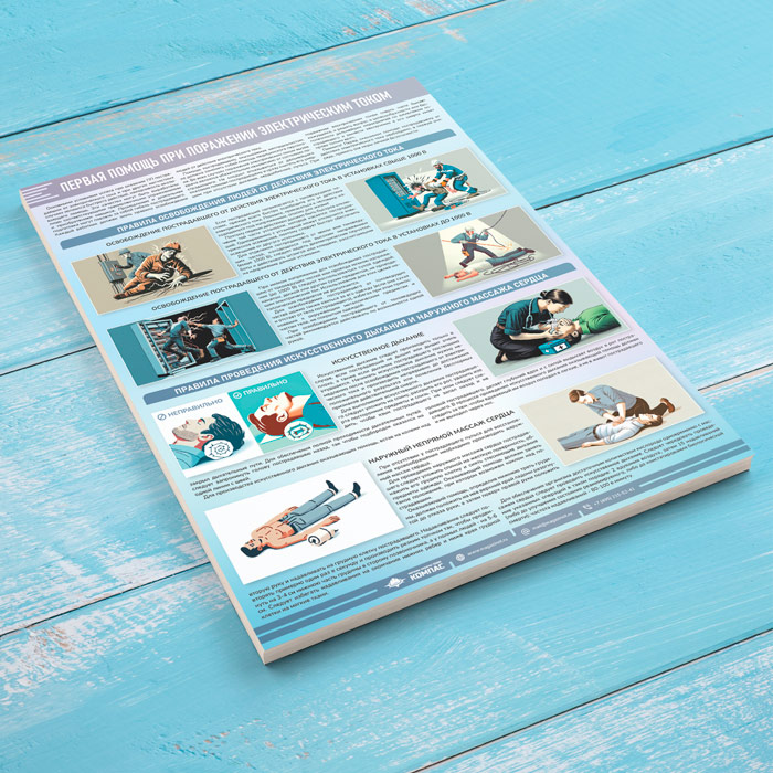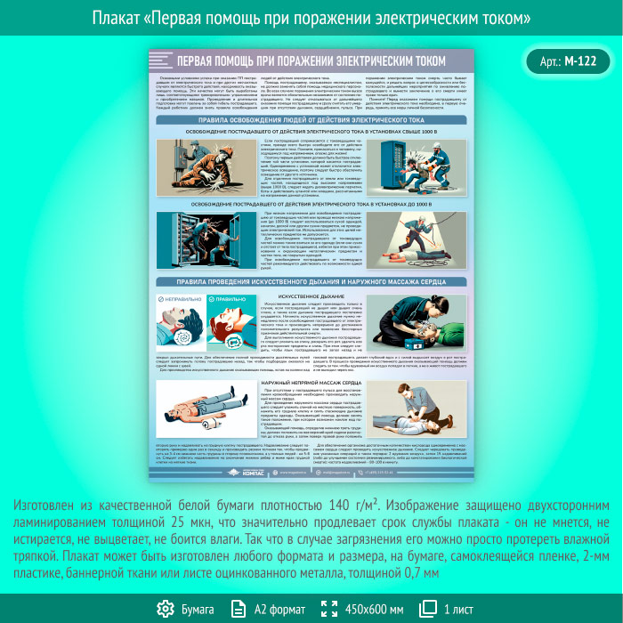 Плакат «Первая помощь при поражении электрическим током» (М-122, ламинированная бумага, А2, 1 лист) в Твери купить