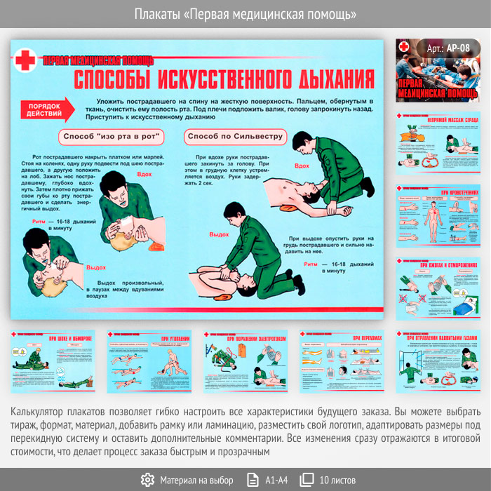 Плакаты «Первая медицинская помощь» (АР-08, 10 листов) в Твери купить