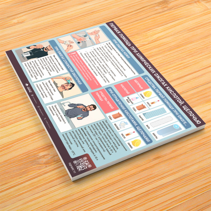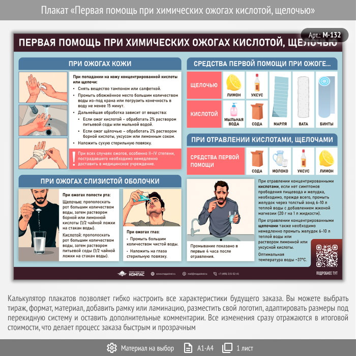 Плакат «Первая помощь при химических ожогах кислотой, щелочью» с QR (М-132, 1 лист) в Твери купить