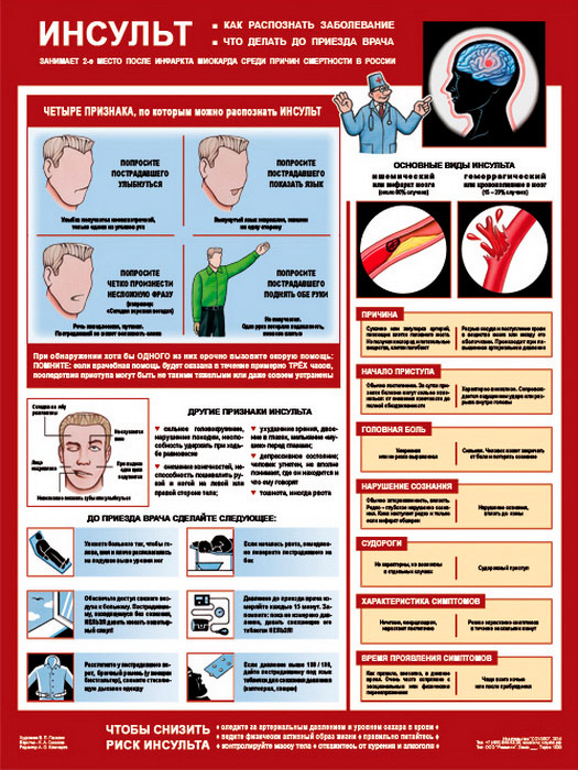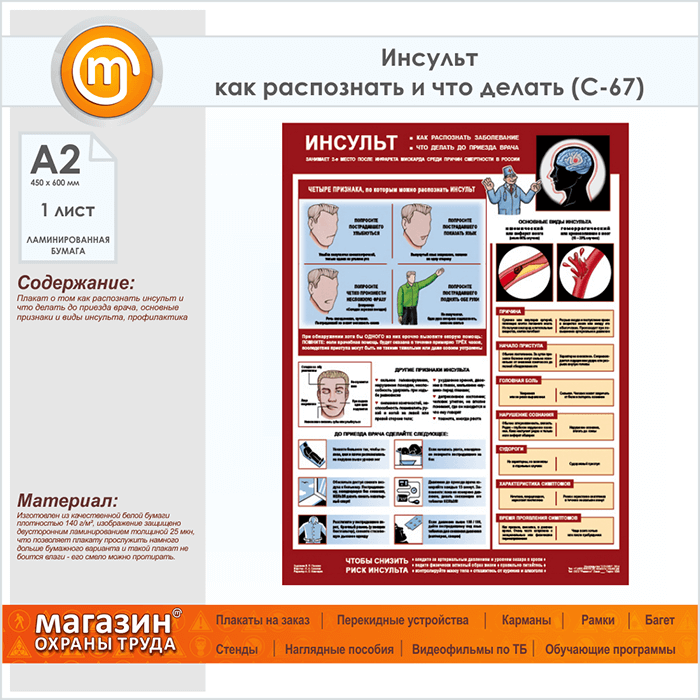 Плакат «Инсульт - как распознать и что делать» (С-67, ламинированная бумага, А2, 1 лист) в Твери купить