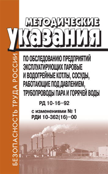 Методические указания по обследованию предприятий, эксплуатирующих паровые и водогрейные котлы, сосуды, работающие под давлением, трубопроводы пара и горячей воды. РД 10-16-92 (ЛД-112) в Твери купить