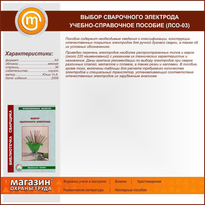 Выбор сварочного электрода – учебно-справочное пособие (ЛСО-03) в Твери купить