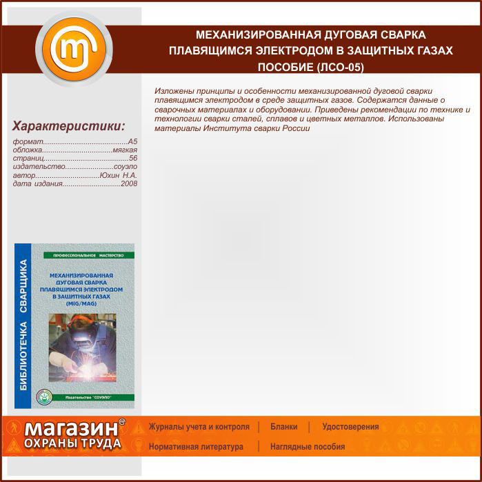 Механизированная дуговая сварка плавящимся электродом в защитных газах – пособие (ЛСО-05) в Твери купить