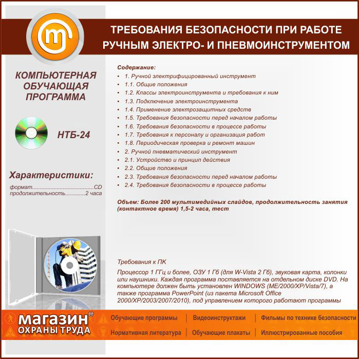 «Требования безопасности при работе ручным электро- и пневмоинструментом», обучающая программа в Твери купить