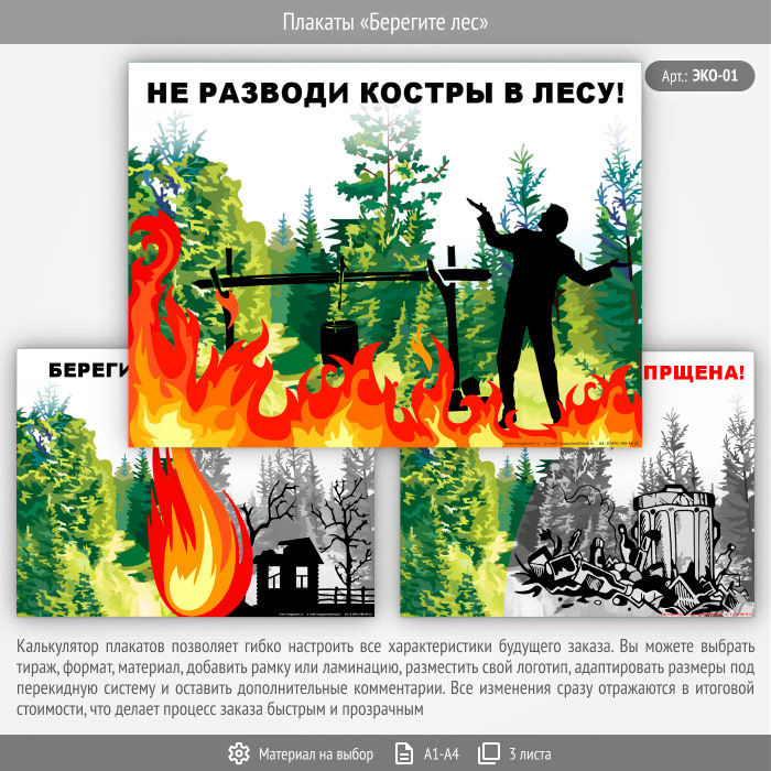 Плакаты «Берегите лес» (ЭКО-01, 3 листа) в Твери купить