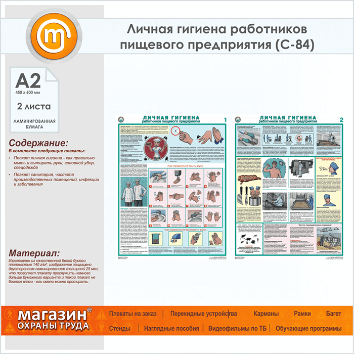 Плакаты «Личная гигиена работников пищевого предприятия» (С-84, ламинированная бумага, А2, 2 листа) в Твери купить