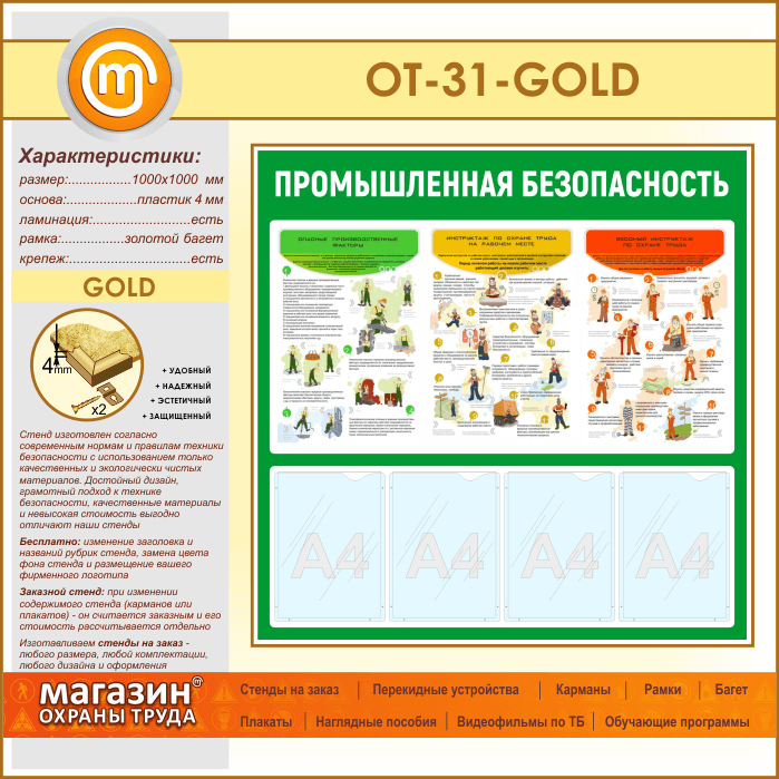 Стенд «Промышленная безопасность» с 4 карманами (OT-31-GOLD) в Твери купить