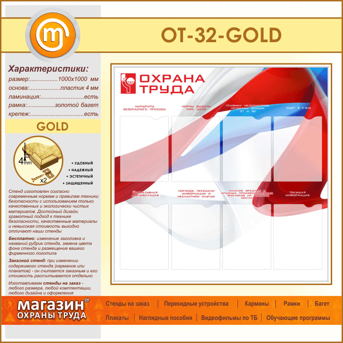 Стенд «Охрана труда» с 8 карманами (OT-32-GOLD) в Твери купить