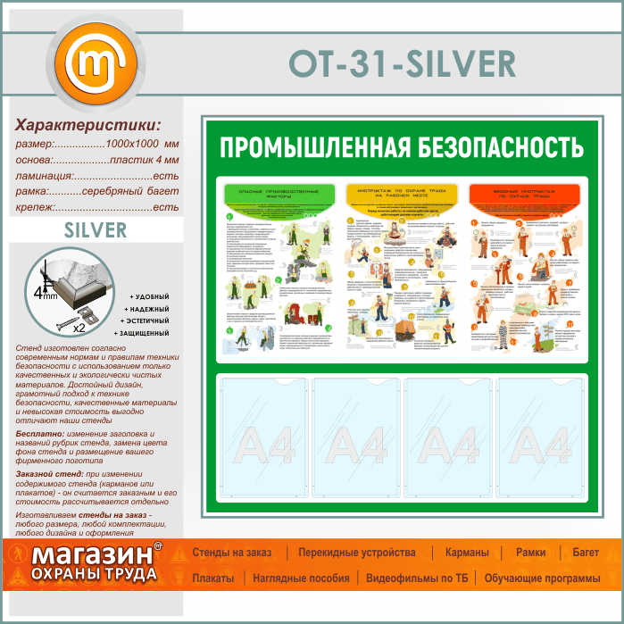 Стенд «Промышленная безопасность» с 4 карманами (OT-31-SILVER) в Твери купить
