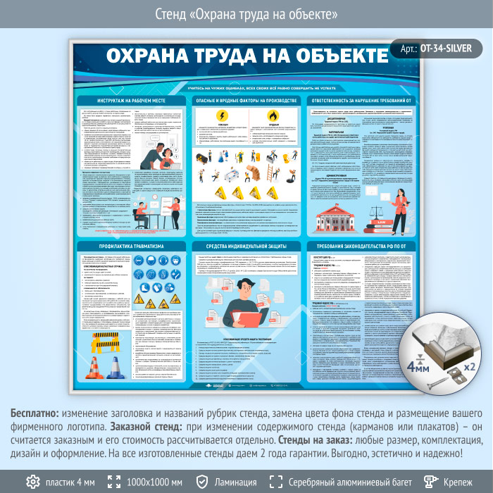 Стенд «Охрана труда на объекте» (OT-34-SILVER) в Твери купить