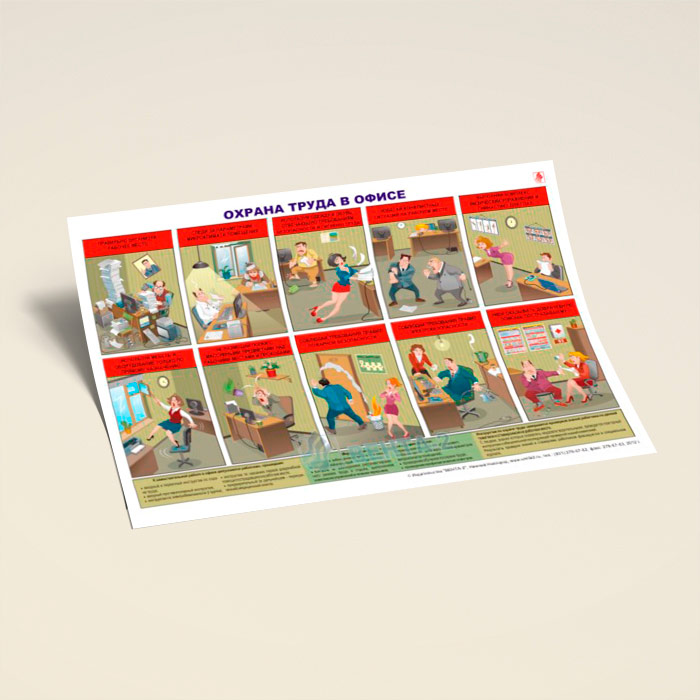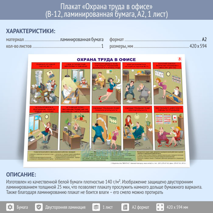 Плакат «Охрана труда в офисе» (В-12, ламинированная бумага, А2, 1 лист) в Твери купить