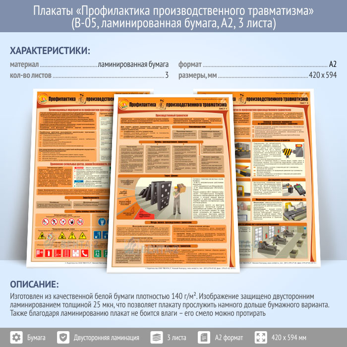 Плакаты «Профилактика производственного травматизма» (В-05, ламинированная бумага, А2, 3 листа) в Твери купить
