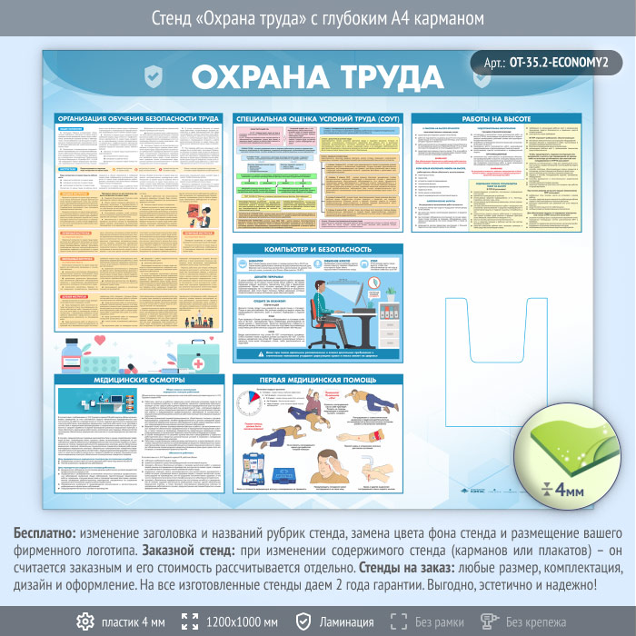 Стенд «Охрана труда» с глубоким А4 карманом (OT-35.2-ECONOMY2) в Твери купить