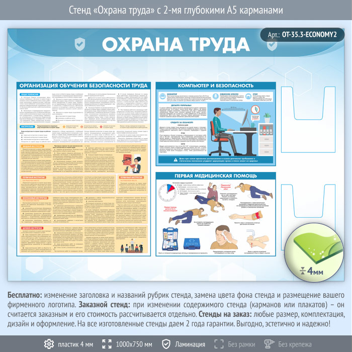 Стенд «Охрана труда» с 2-мя глубокими А5 карманами (OT-35.3-ECONOMY2) в Твери купить