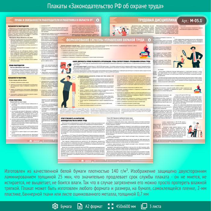 Плакаты «Законодательство РФ об охране труда» (М-05.1, ламинированная бумага, А2, 3 листа) в Твери купить