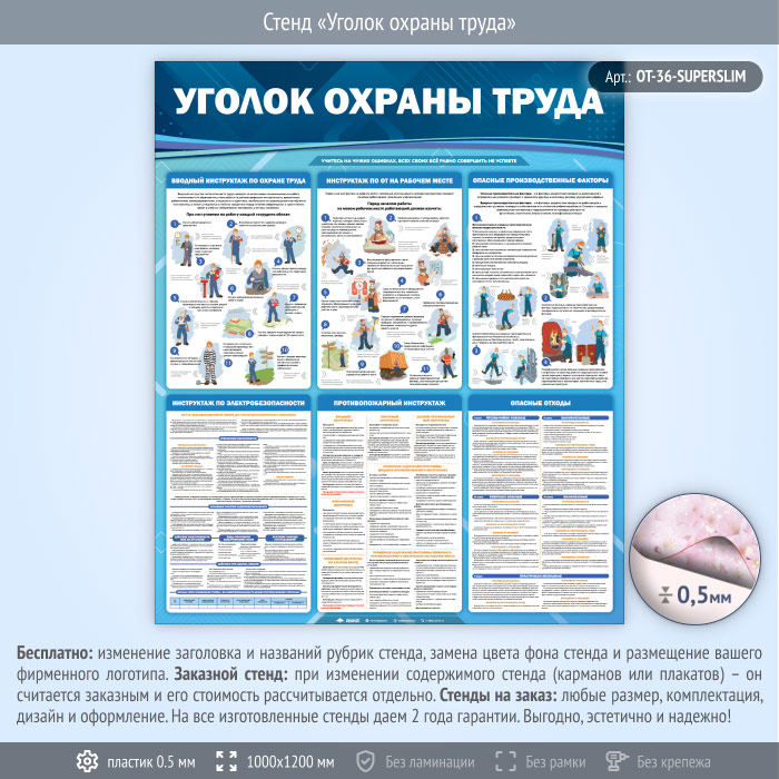 Стенд «Уголок охраны труда» (OT-36-SUPERSLIM) в Твери купить