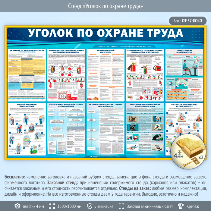 Стенд «Уголок по охране труда» (OT-37-GOLD) в Твери купить
