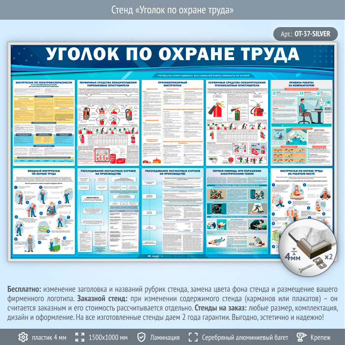 Стенд «Уголок по охране труда» (OT-37-SILVER) в Твери купить