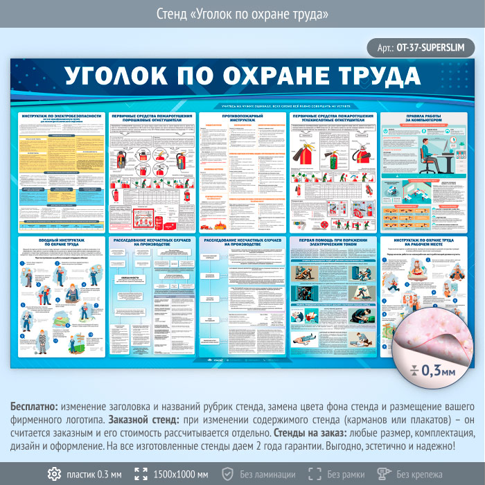 Стенд «Уголок по охране труда» (OT-37-SUPERSLIM) в Твери купить