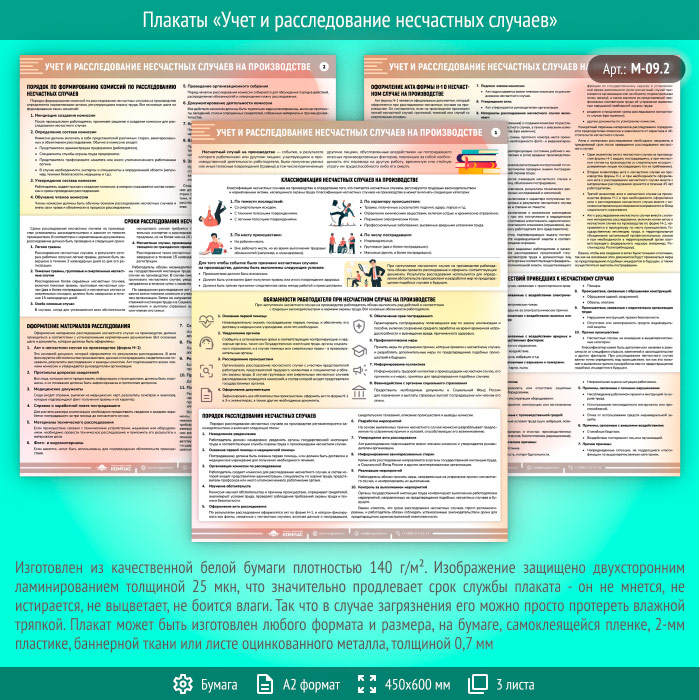 Плакаты «Учет и расследование несчастных случаев» (М-09.2, ламинированная бумага, А2, 3 листа) в Твери купить