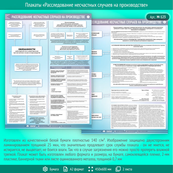 Плакаты «Расследование несчастных случаев на производстве» (М-123, ламинированная бумага, А2, 2 листа) в Твери купить