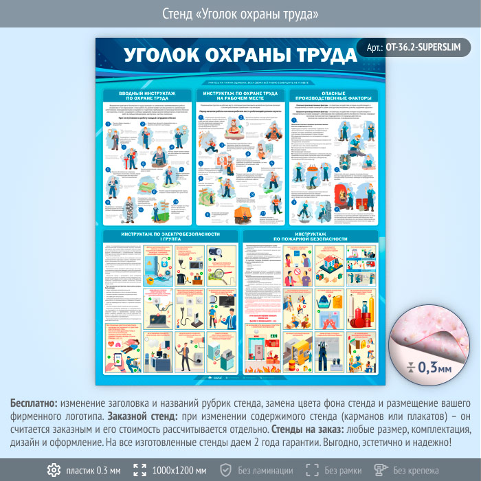 Стенд «Уголок охраны труда» (OT-36.2-SUPERSLIM) в Твери купить