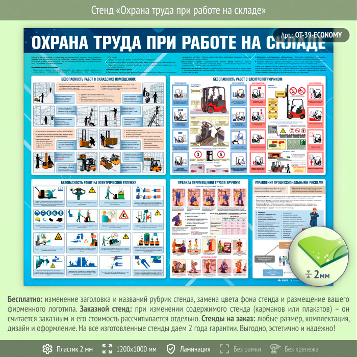 Стенд «Охрана труда при работе на складе» (OT-39-ECONOMY) в Твери купить
