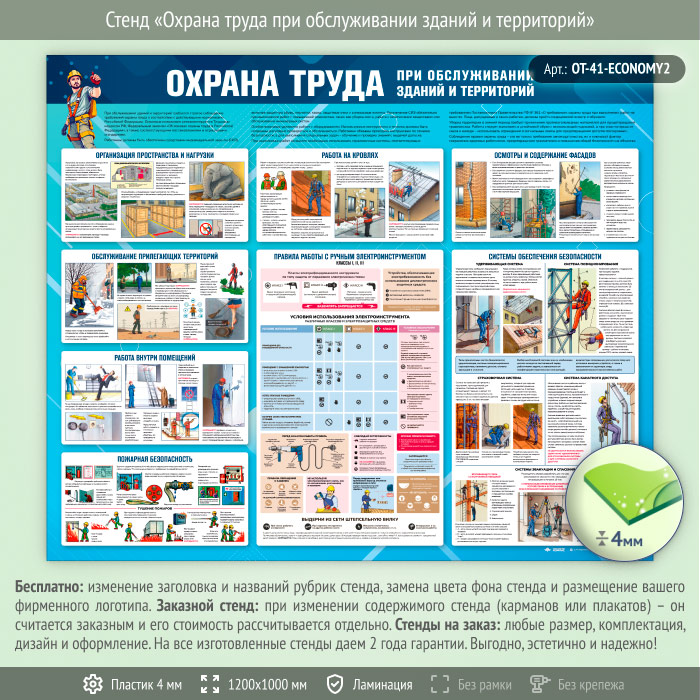 Стенд «Охрана труда при обслуживании зданий и территорий» (OT-41-ECONOMY2) в Твери купить