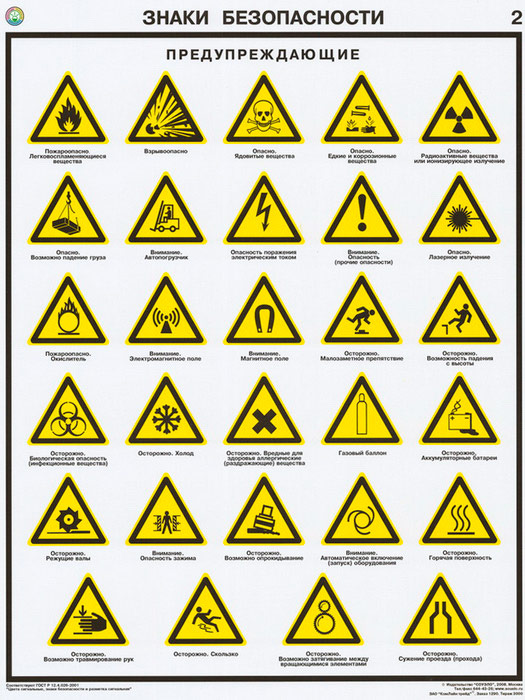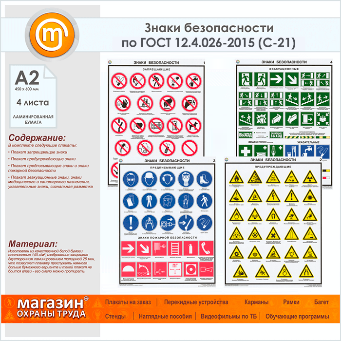 Плакаты «Знаки безопасности по ГОСТ 12.4.026-2015» (С-21, ламинированная бумага, А2, 4 листа) в Твери купить
