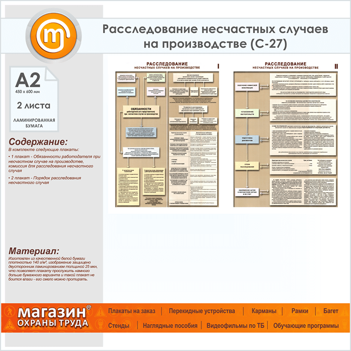 Плакаты «Расследование несчастных случаев на производстве» (С-27, ламинированная бумага, А2, 2 листа) в Твери купить