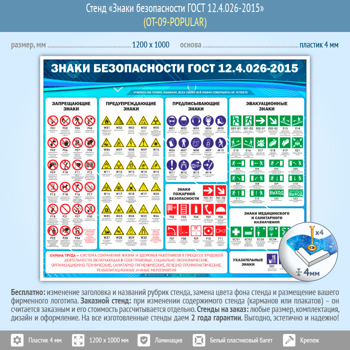 Стенд «Знаки безопасности ГОСТ 12.4.026-2015» (OT-09-POPULAR) в Твери купить