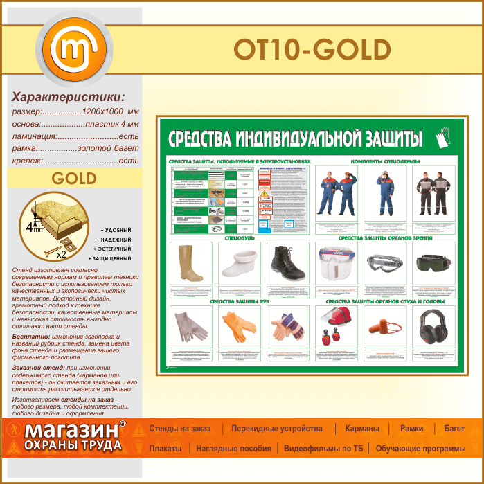 Стенд «Средства индивидуальной защиты» (OT-10-GOLD) в Твери купить