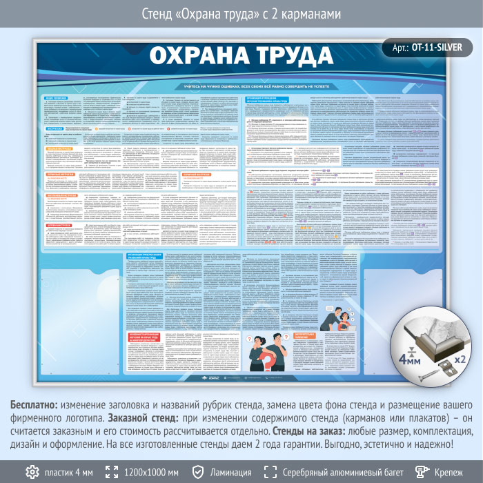 Стенд «Охрана труда» с 2 карманами (OT-11-SILVER) в Твери купить