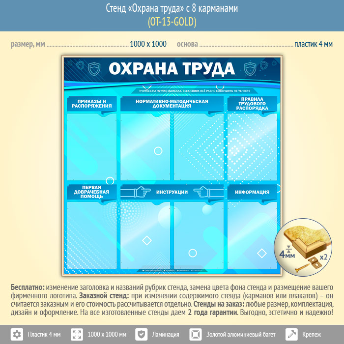 Стенд «Охрана труда» с 8 карманами (OT-13-GOLD) в Твери купить