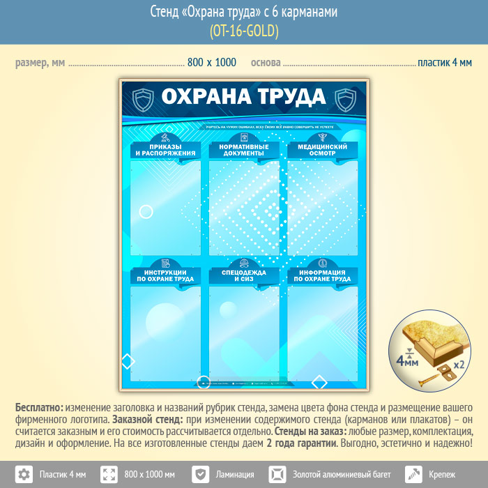 Стенд «Охрана труда» с 6 карманами (OT-16-GOLD) в Твери купить