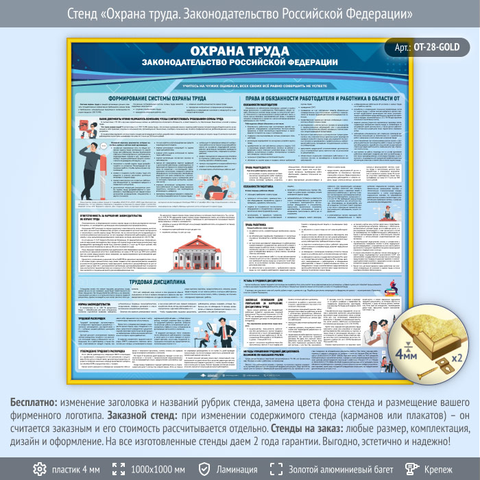 Стенд «Охрана труда. Законодательство Российской Федерации» (OT-28-GOLD) в Твери купить