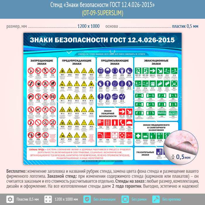 Стенд «Знаки безопасности ГОСТ 12.4.026-2015» (OT-09-SUPERSLIM) в Твери купить