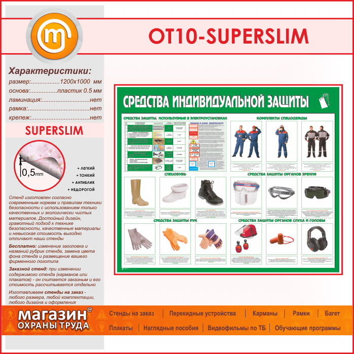 Стенд «Средства индивидуальной защиты» (OT-10-SUPERSLIM) в Твери купить