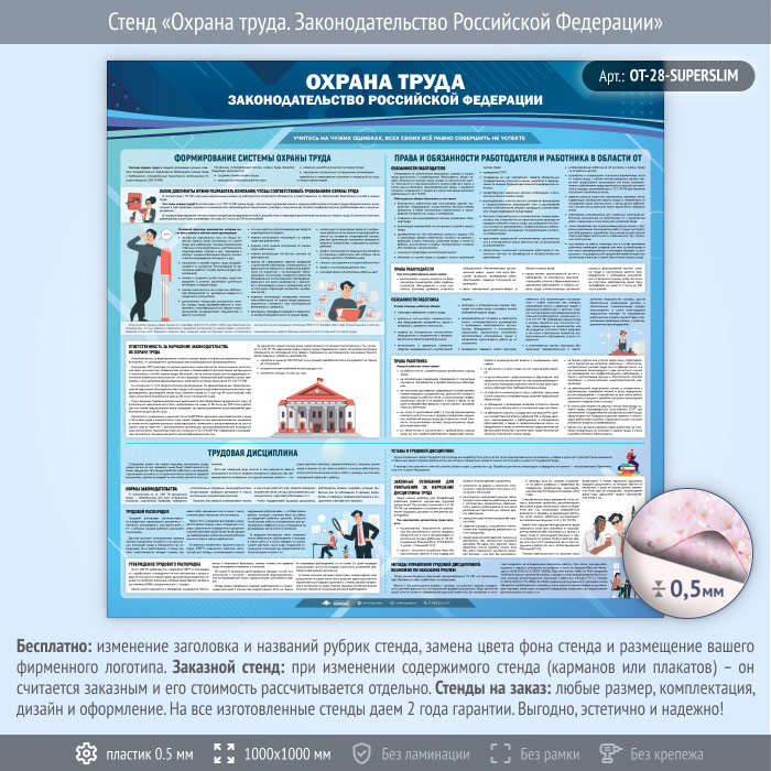 Стенд «Охрана труда. Законодательство Российской Федерации» (OT-28-SUPERSLIM) в Твери купить