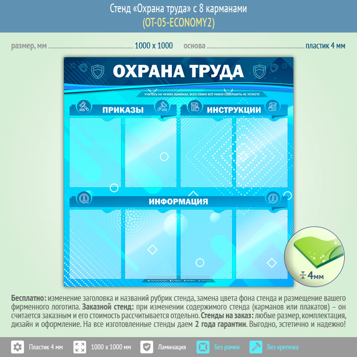 Стенд «Охрана труда» с 8 карманами (OT-05-ECONOMY2) в Твери купить
