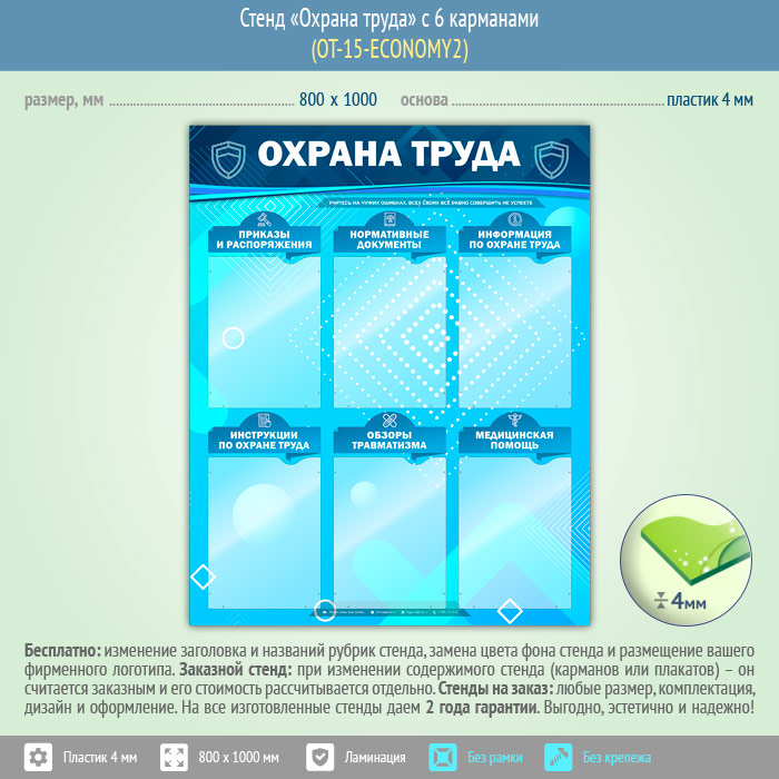 Стенд «Охрана труда» с 6 карманами (OT-15-ECONOMY2) в Твери купить