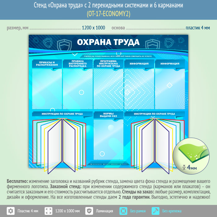 Стенд «Охрана труда» с 2 перекидными системами и 6 карманами (OT-17-ECONOMY2) в Твери купить
