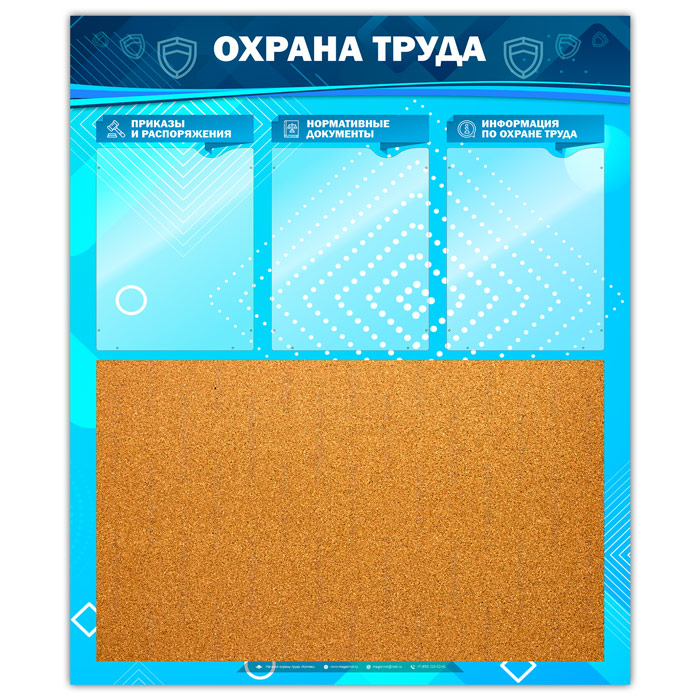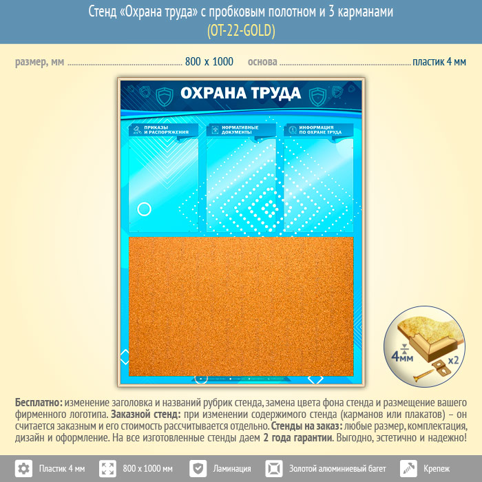 Стенд «Охрана труда» с пробковым полотном и 3 карманами (OT-22-GOLD) в Твери купить