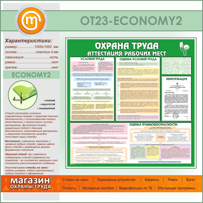 Стенд «Охрана труда. Аттестация рабочих мест» с карманом (OT-23-ECONOMY2) в Твери купить