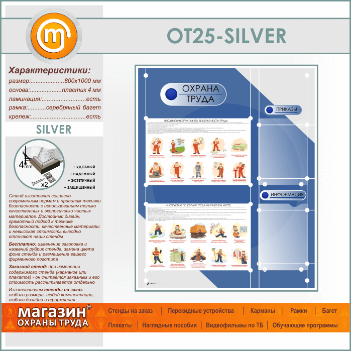 Стенд «Охрана труда» с 2 плоскими карманами (OT-25-SILVER) в Твери купить