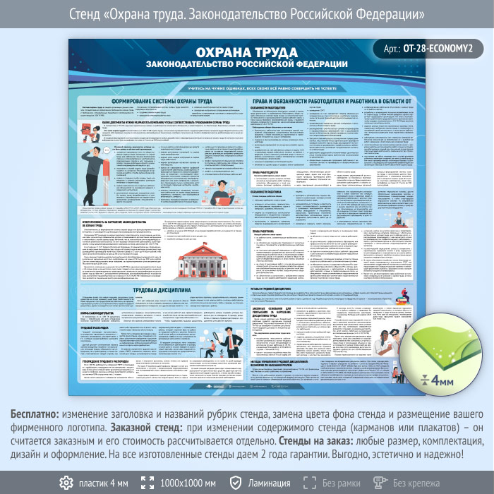 Стенд «Охрана труда. Законодательство Российской Федерации» (OT-28-ECONOMY2) в Твери купить